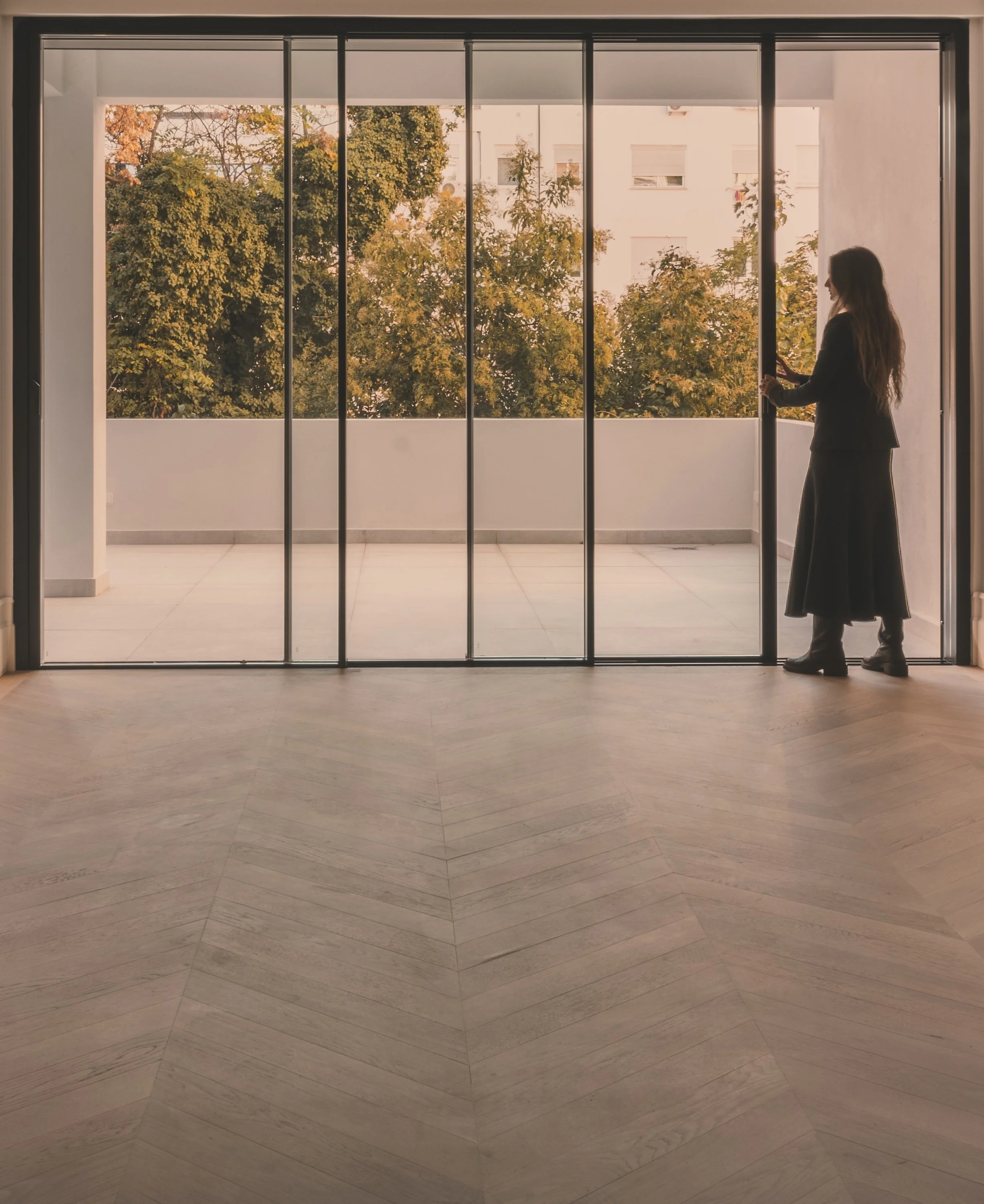 Inspirada en la arquitectura racionalista de Adolf Loos y en la casa patio mediterránea, la vivienda equilibra sobriedad y calidez. La selección de materiales –maderas naturales, diferentes tipos de piedra y acabados neutros– aporta serenidad, permitiendo que el mobiliario y los detalles arquitectónicos sean protagonistas.